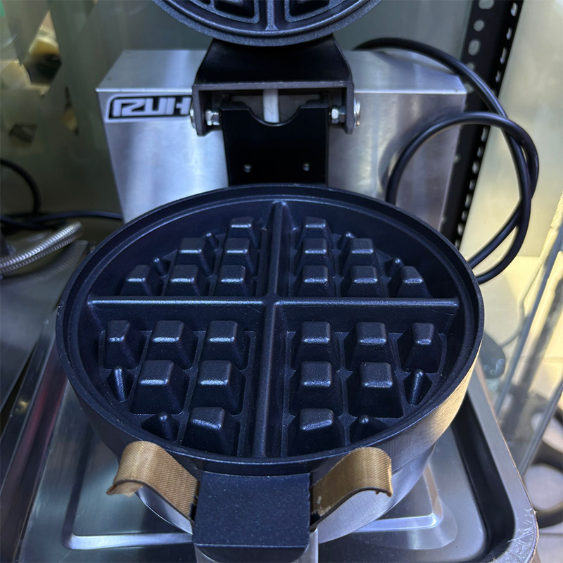 Antiadherente de Teflón Japonés: Equipado con placas de teflón japonés de calidad superior, que aseguran que el waffle se desprenda suavemente sin romperse, manteniendo su forma circular clásica.